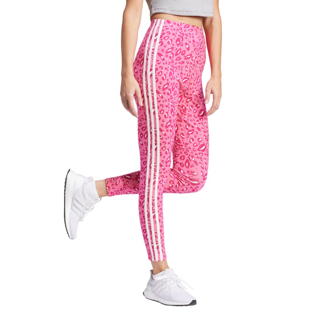 Näytä villi puolesi! Nämä adidas-leggingsit yhdistävät silmiinpistävän eläinkuosisen designin ikonisiin 3-raitoihin. Korkea vyötärö tarjoaa imartelevaa peittävyyttä ja tukea samalla kun pehmeä, joustava kangas liikkuu kanssasi. Yhdistä legginsit ylisuureen huppariin ja olet valmiina minne menetkin.