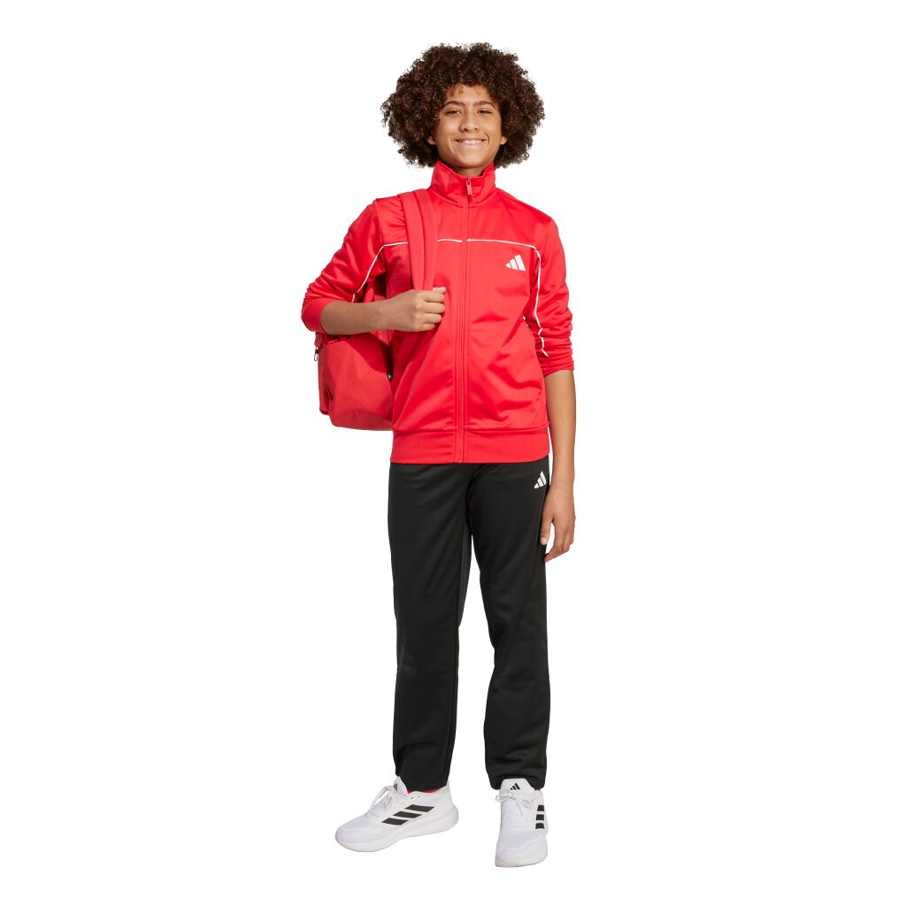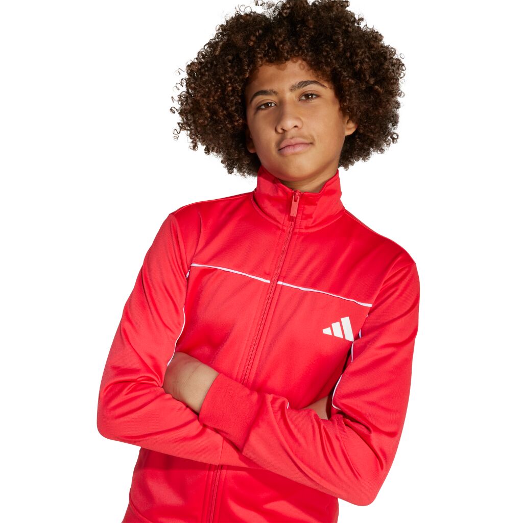 Tämä adidaksen juniorien verkkaripuku pitää olon mukavana koko päivän, ja se sopii monenlaiseen käyttöön. Pehmeäksi harjattu trikookangas tekee siitä täydellisen rennon ja lämpimän vaatteen. Pystykaulus ja korostetut saumalinjat antavat asulle urheilullisen ilmeen.