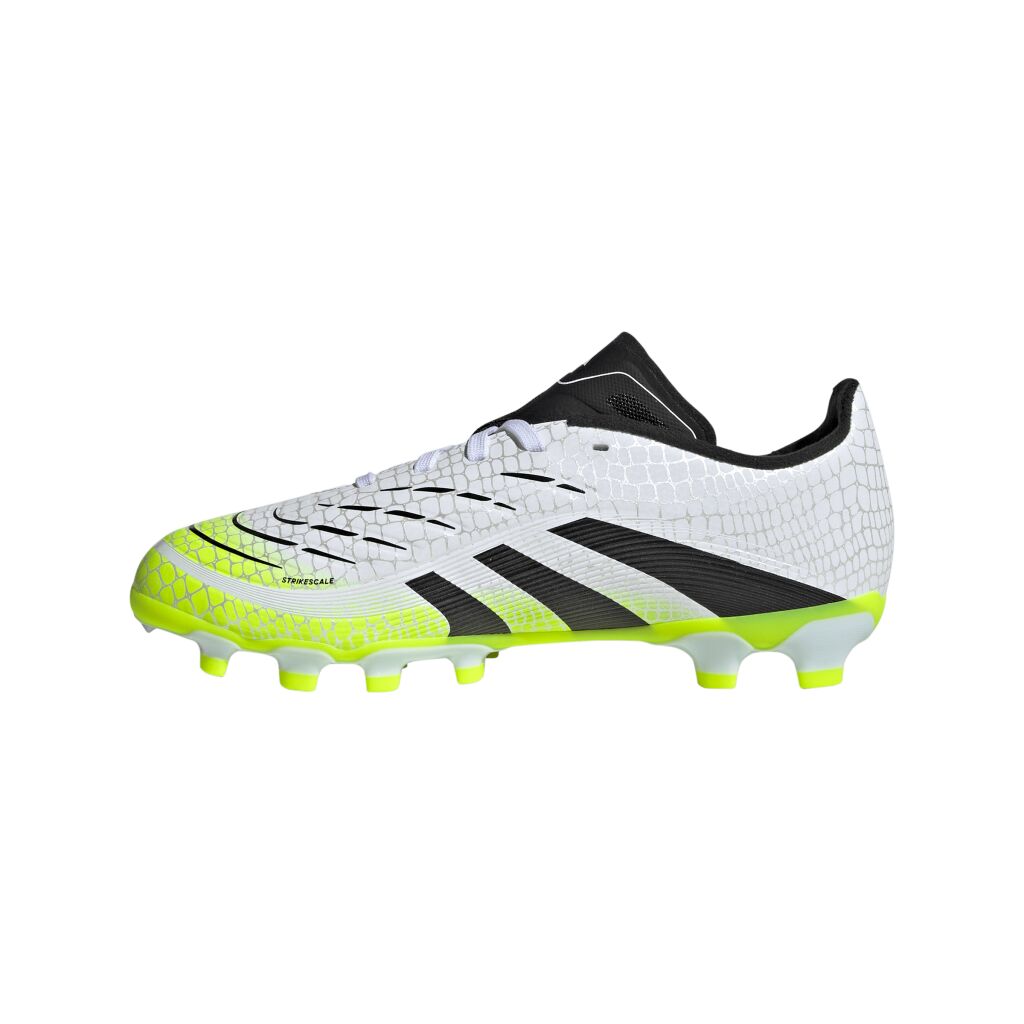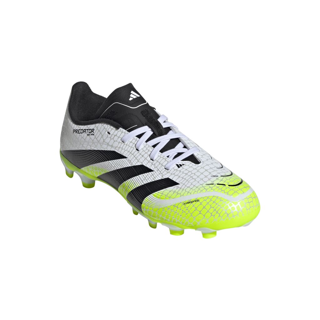 Nämä junioreiden adidas Predator League -jalkapallokengät on suunniteltu maalintekoon. Hybridfeel-päällinen yhdistää koko kengän kattavan 3D-tekstuurin ja pitävät Strikescale-urat, jotka auttavat pallonhallinnassa. Controlplate-ulkopohja tarjoaa vakautta monenlaisilla kentillä.