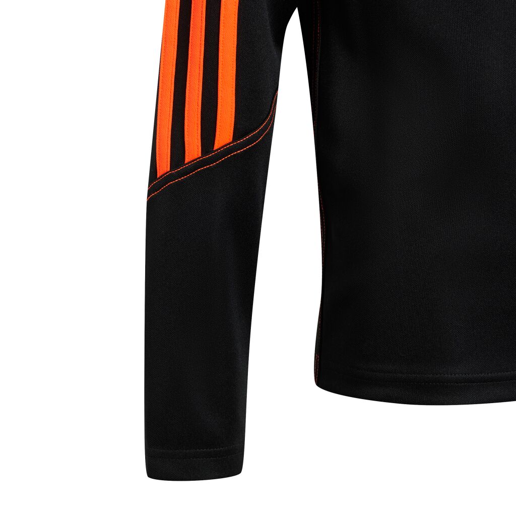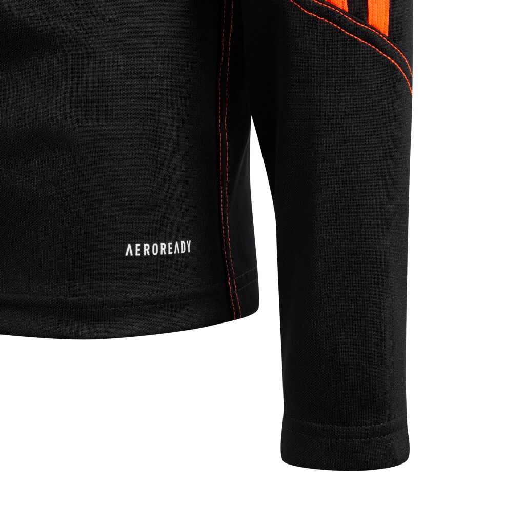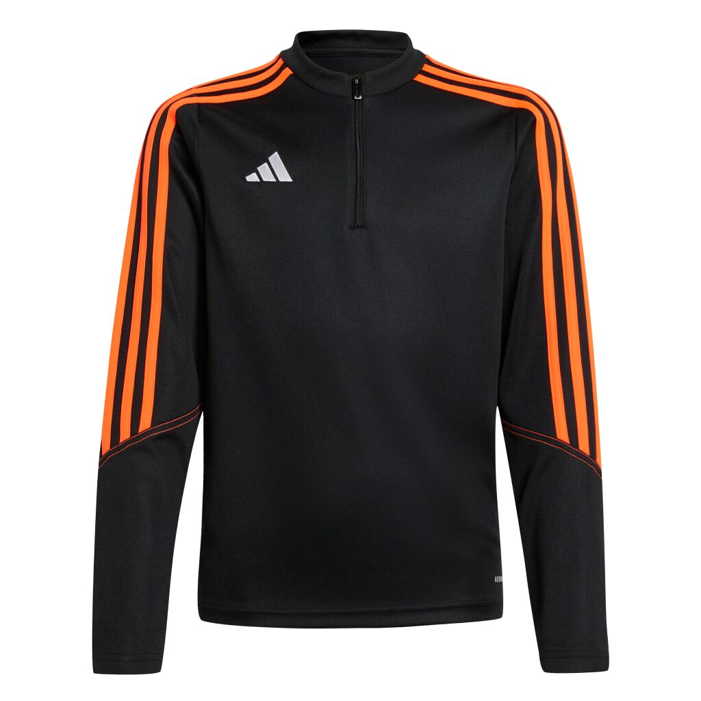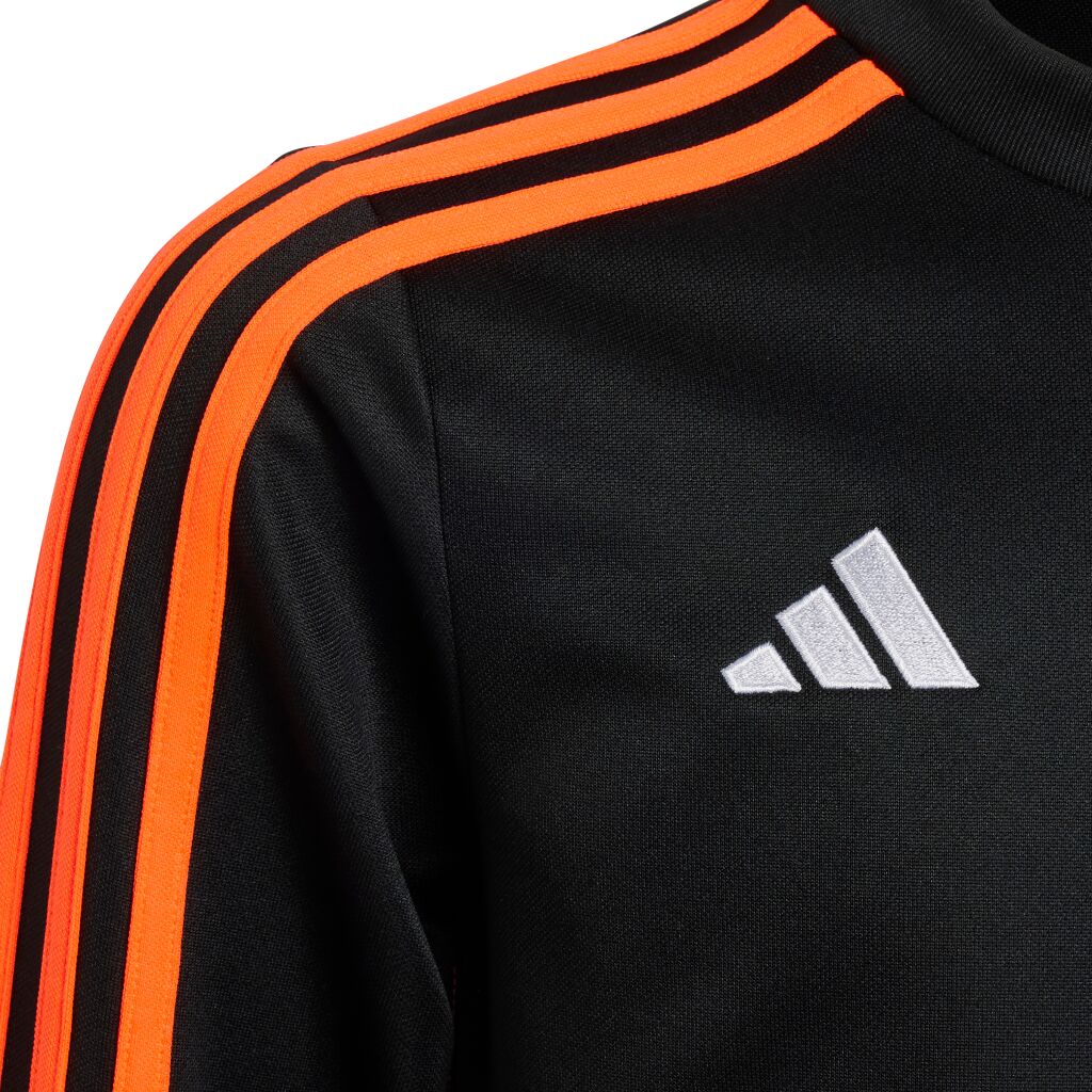 Juniorien Tiro 23 Club -jalkapallotoppi. Topissa vetoketju kauluksessa ja hihansuissa peukaloreiät. Kosteutta siirtävä AEROREADY-teknologia pitää olosi mukavana. Slim fit -mitoitettu toppi on valmistettu 100% kierrätetyistä materiaaleista.