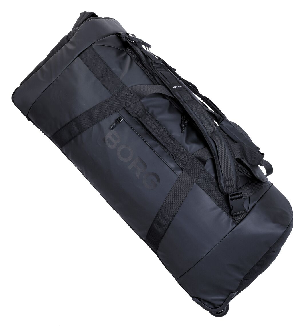 Björn Borg Borg Travel Duffle Bag 120L on valmistettu kestävästä kierrätetystä ja TPE-pinnoitetusta polyesteristä. Siinä on kaksi pyörää ja sivukahva helppoa kuljettamista varten, kaksi kantokahvaa sekä kaksi pehmustettua, säädettävää olkahihnaa, joiden ansiosta laukkua voi kantaa myös reppuna. Laukussa on suuri päälokero, joka suljetaan kaksisuuntaisella vetoketjulla, kätevä etutasku vetoketjulla, sisäpuolella vetoketjutaskuja tavaroiden järjestelyyn sekä osoitekorttipaikka päällä.