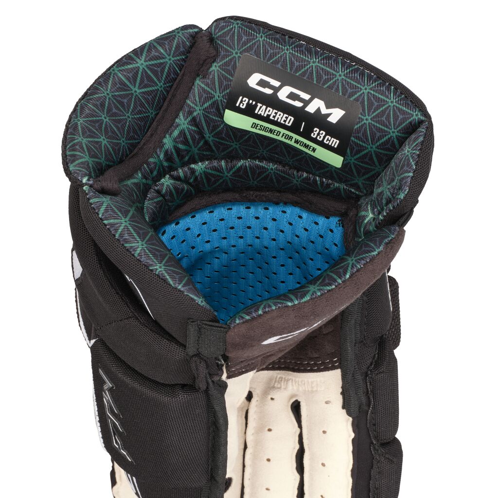 Naisten eliittitason jääkiekkohanskat uudesta täysin naispelaajille suunnitellusta CCM JETSPEED FTW suojasarjasta.