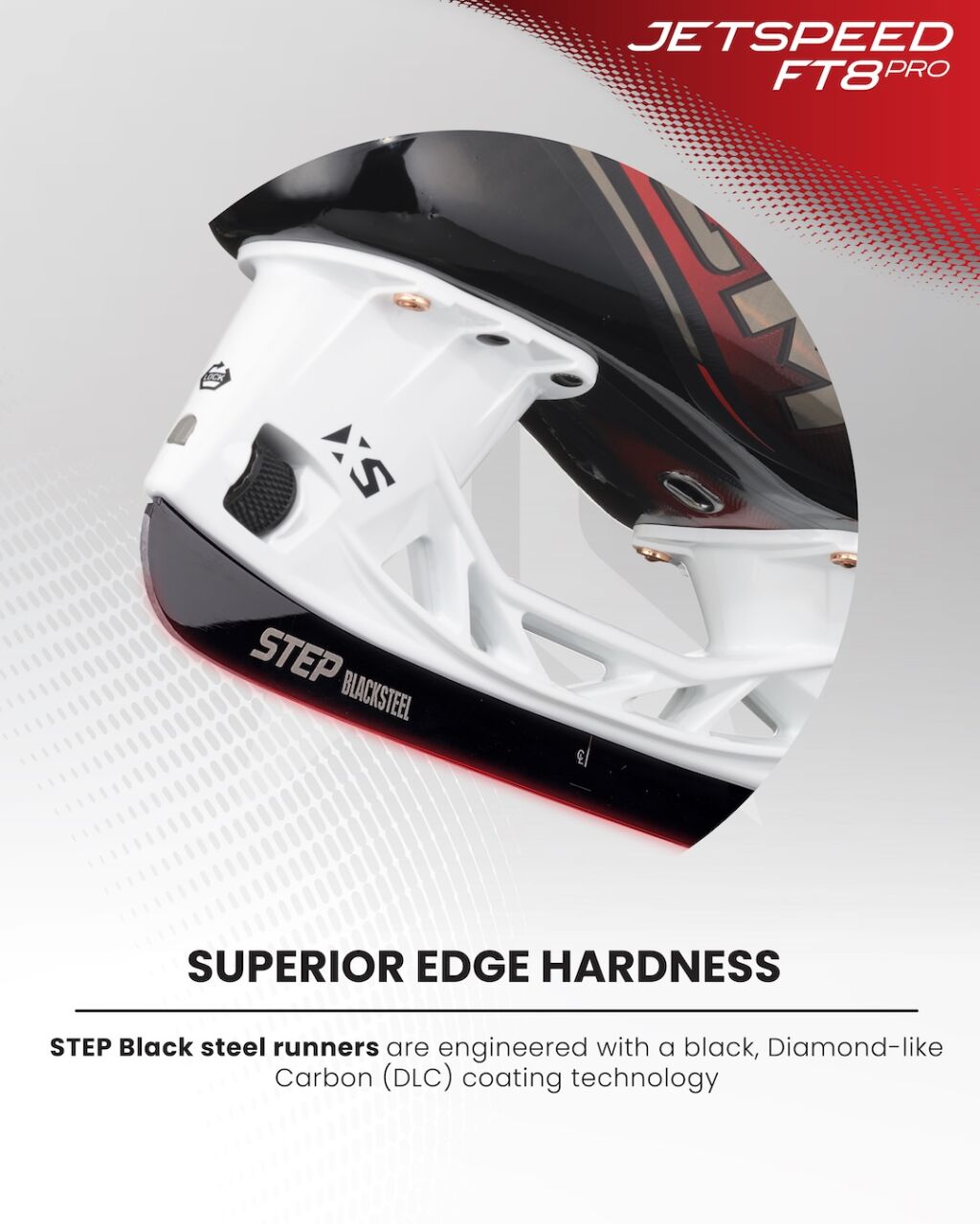 STEP Blacksteel -terät: STEP Blacksteel -terissä on musta DLC-pinnoite (Diamond-Like Carbon), joka parantaa terän kovuutta ja mahdollistaa ilmiömäisen liu'un ja räjähtävän luistelunopeuden.