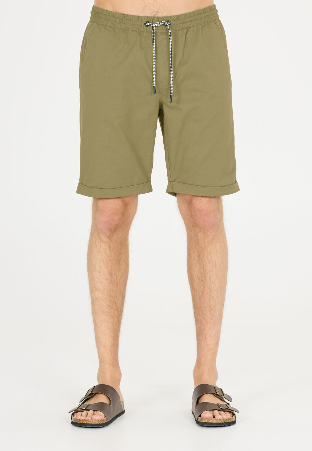 Miesten puuvillaiset shortsit vapaa-aikaan. Säädettävä vyötärönauha takaa hyvän istuvuuden. Taskut sivuilla ja takana lisää käyttömukavuutta.