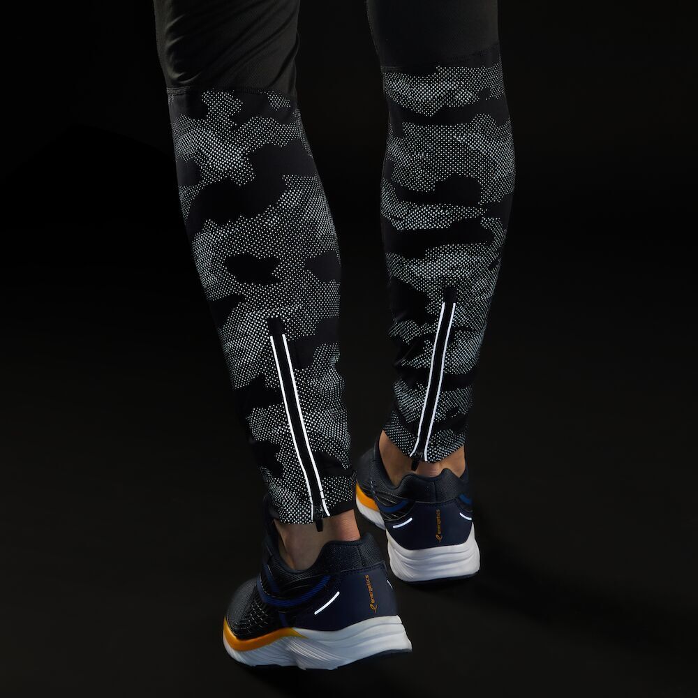Miesten juoksutrikoot heijastavilla yksityiskohdilla.
