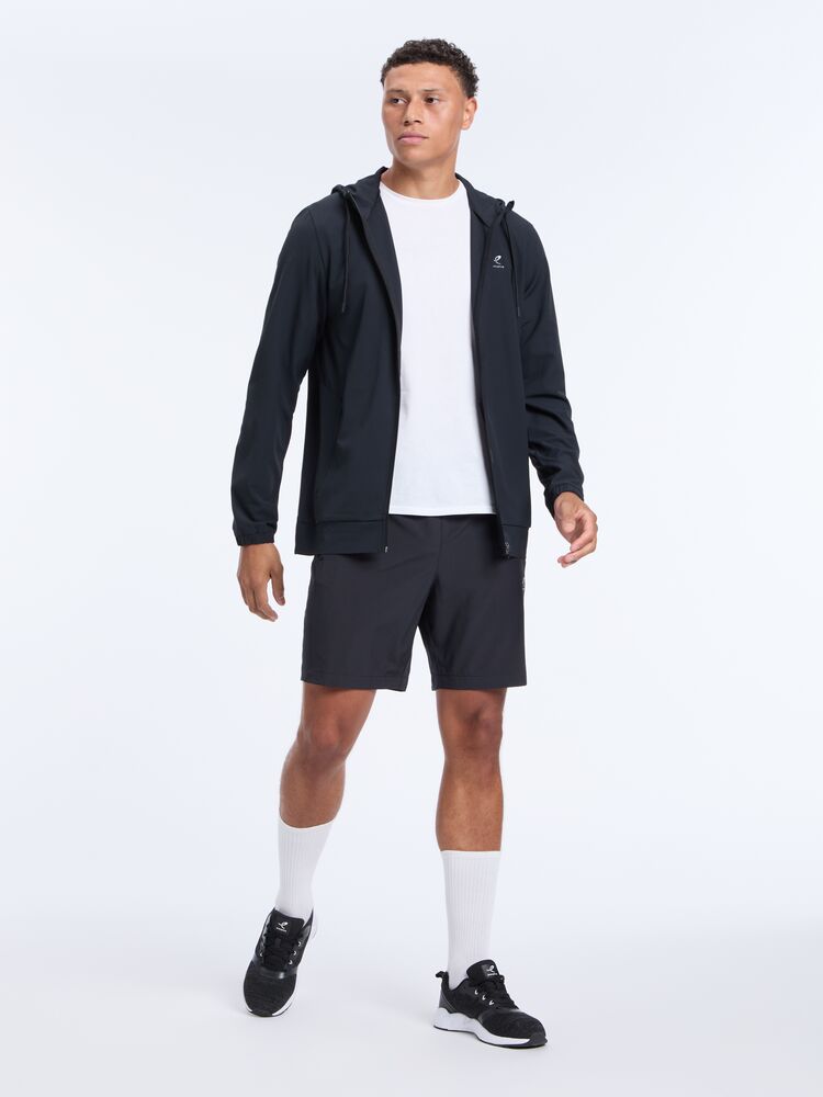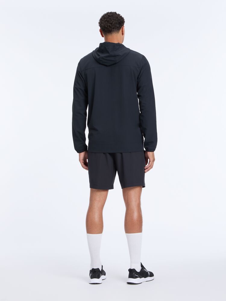 Miesten kevyt multisport takki juoksuun ja treeniin. Säädettävä huppu tarjoaa lisäsuojaa vaihtelevissa sääolosuhteissa. Joustava materiaali mahdollistaa hyvän liikkuvuuden.