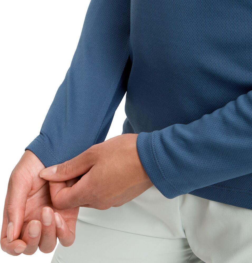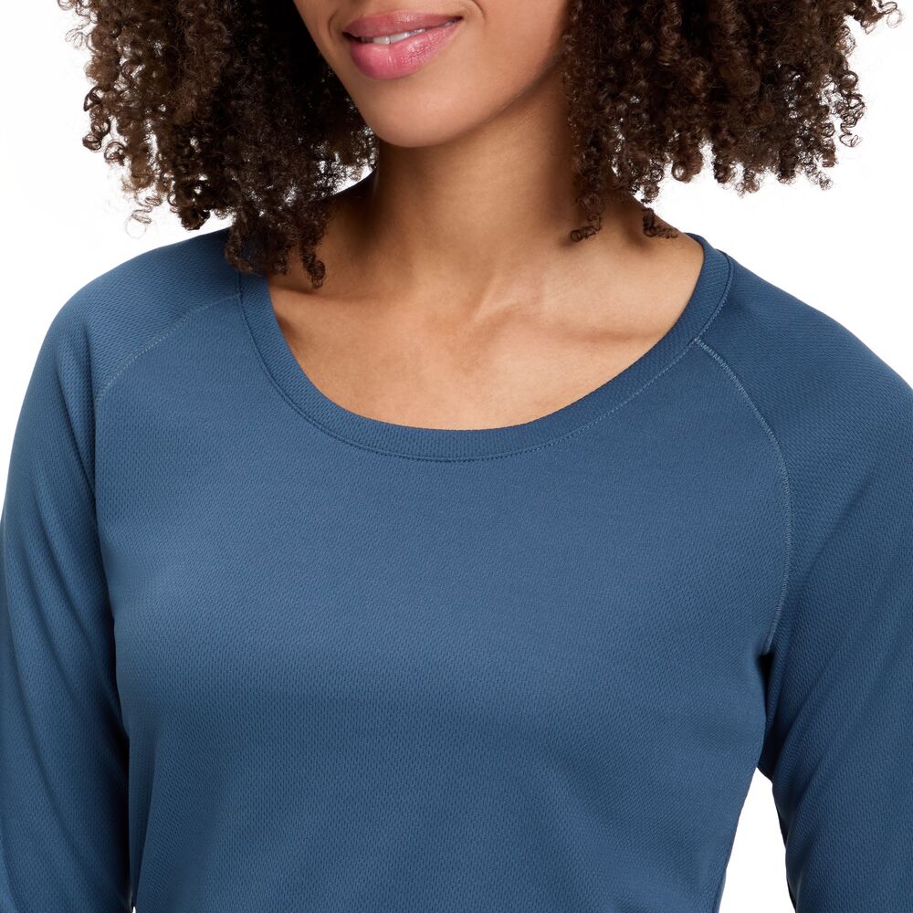 Naisten tekninen pitkähihainen paita juoksuun ja muihin lajeihin kosteutta siirtävästä DRY PLUS -materiaalista.