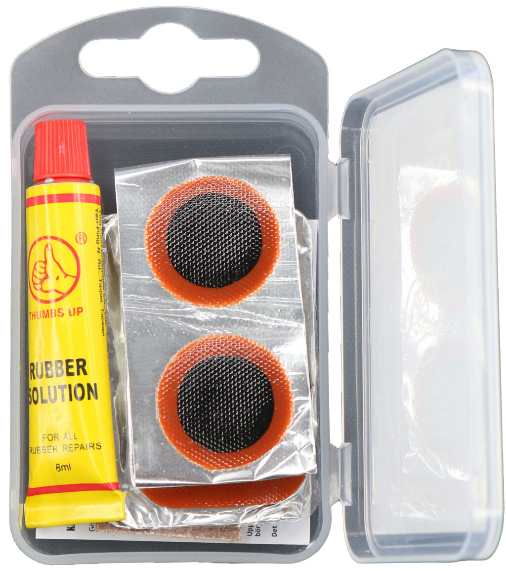 Käytännöllinen ja hieman suurempi paikkarasia, joka sisältää perustarvikkeet polkupyörän sisärenkaan paikkaamiseen. Setissä on 7 paikkalappua sekä liima, joiden avulla puhjenneen renkaan korjaaminen onnistuu nopeasti ja helposti.
