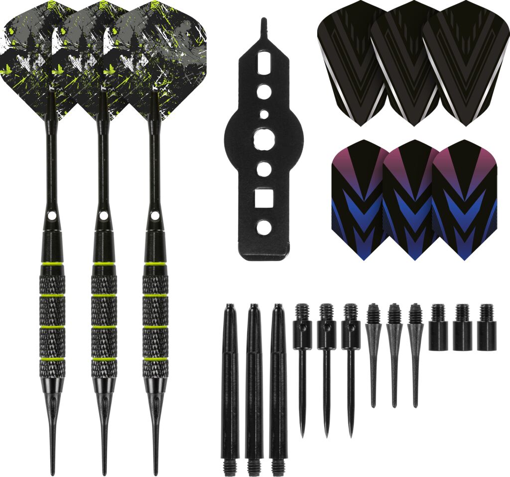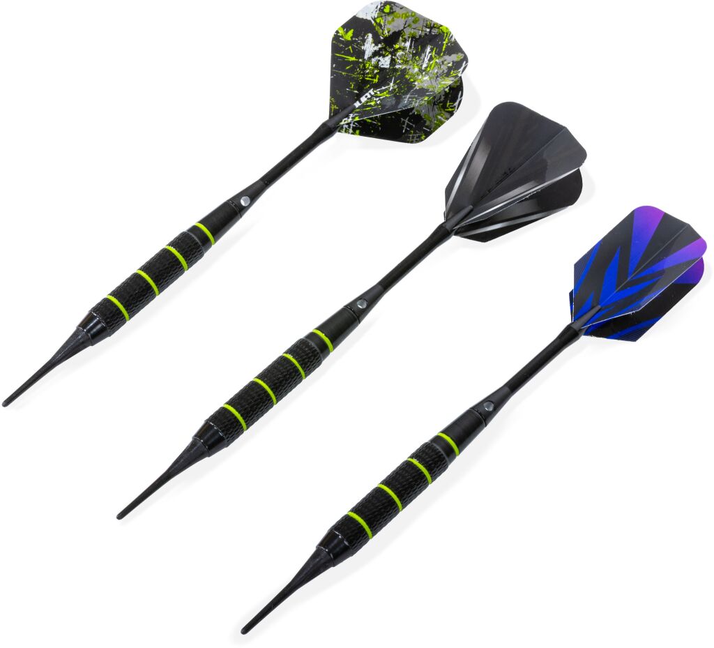 Setti sisältää kolme messinkipinnoitettua dartsrunkoa, jotka tarjoavat erinomaisen tasapainon ja tuntuman. Vaihdettavat teräs- ja pehmeät kärjet mahdollistavat pelaamisen sekä perinteisillä sisal-tauluilla että elektronisilla darts-tauluilla – yksi setti kaikkiin tilanteisiin!