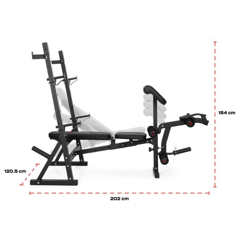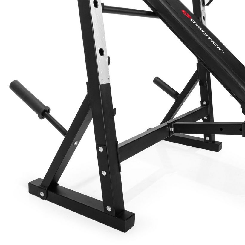 Gymstick WB8.0 on laadukas ja monipuolinen painonnostopenkki, joka on paljon enemmän kuin pelkkä treenipenkki! Penkin avulla voidaan harjoitella tehokkaasti niin penkkipunnerrusta kuin olkapäitä, sekä jalkoja, käsiä ja vatsalihaksia. Säädettävän vinopenkin lisäksi, penkki on varustettu jalkapenkillä, hauislaudalla ja kyykkytelineellä. Penkin selkänoja on säädettävissä useisiin eri kulmiin, mikä mahdollistaa harjoittelun eri kulmista. Korkeussäädettävien tankopidikkeiden ja turvarautojen avulla, harjoittelu hoituu turvallisesti. Rungon takaosasta löytyy levypainopidikkeet, sekä toiset tankopidikkeet kyykkyä varten, joissa on myöskin 2 eri korkeutta!