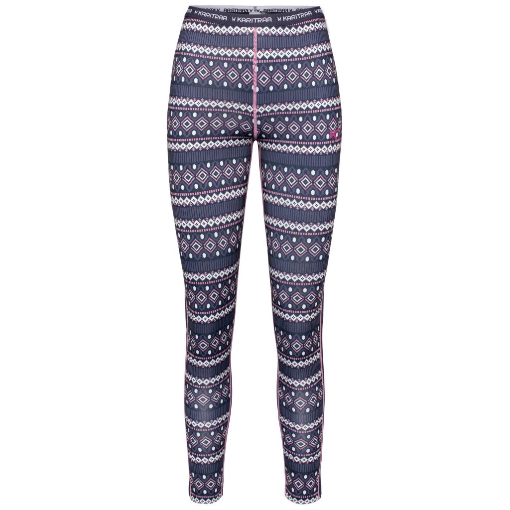 Kari Traa Lune Pant on aktiivisen naisen kerrastohousu reippaisiin seikkailuihin. Erittäin miellyttäväksi harjattu sisäpinta tuntuu taivaalliselta ihoa vasten. Ohuet saumat ehkäisevät hankaumia touhukkaassa menossa ja 4-suuntaan joustava kangas joustaa. Jacquard-neulottu vyötärönauha näyttää ihanalta.