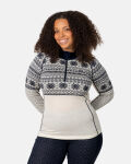 Kari Traa Vilma Half Zip on 100 % merinovillasta valmistettu kerrastopaita, joka pitää sinut lämpimänä myös kosteana. Sileä ja pehmeä Vilman Jacquard-neulos muistuttaa lumisadetta ja joustavat kainalopaneelit mahdollistavat vapaan liikkumisen. Vetoketjullisen kaula-aukon ansiosta voit mukautua vaihteleviin säihin. Napakka istuvuus, raglan-hihat ja korkea kaulus tekevät Wilmasta lämpimän aluskerroksen kylmiin talvipäiviin.