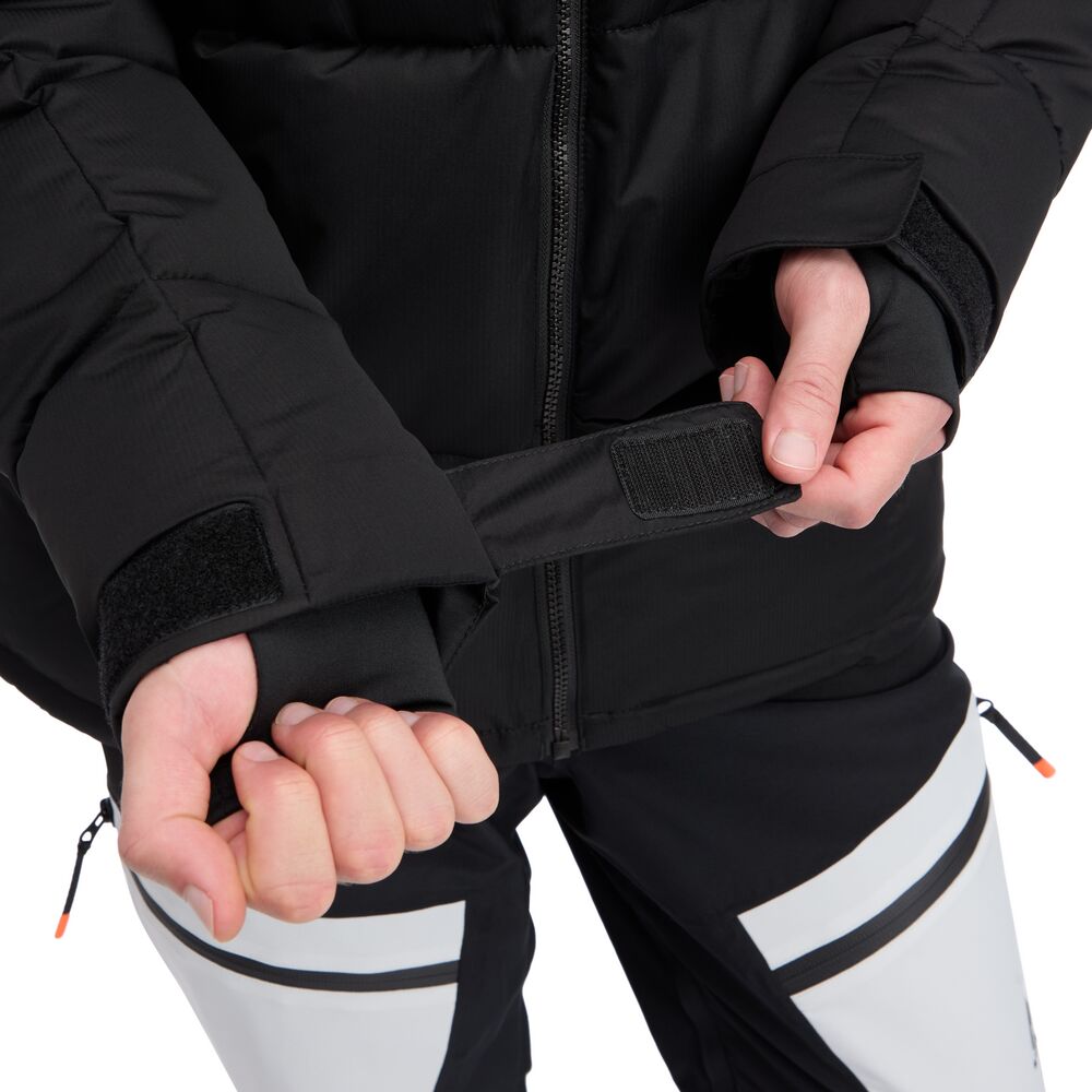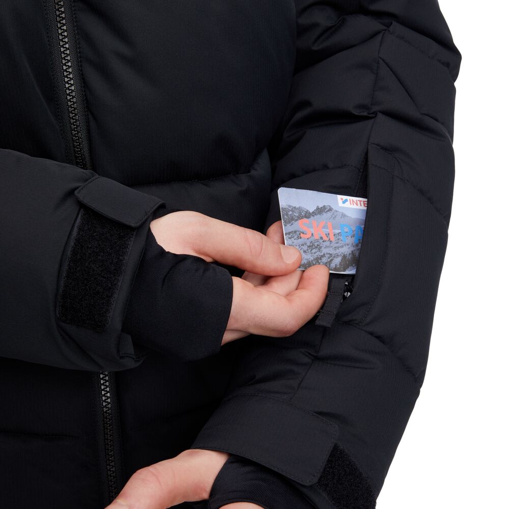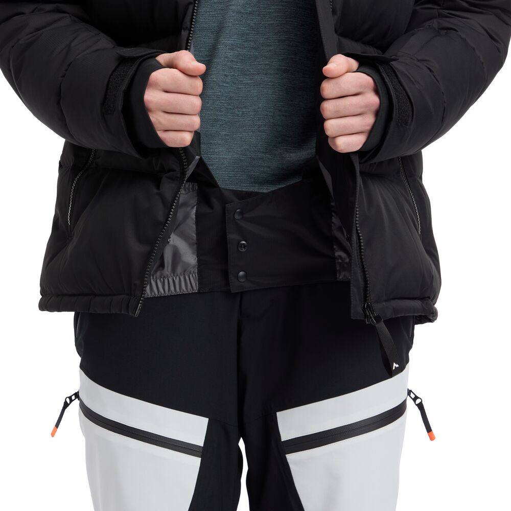 Edwin M miesten laskettelutakki tarjoaa mukavuutta ja suojaa rinteisiin. AQUABASE®-teknologia antaa perustason suojan sateelta ja tuulelta ulkoilun aikana, ja Fellex®-eristys pitää kehon lämpimänä kylmissä olosuhteissa. Takki on täysin teipattu, ja siinä on korkea kaulus, kiinteä ja säädettävä huppu sekä kiinteä lumilukko. Helma ja hihansuut ovat säädettävät, ja hihansuissa on sisemmät peukaloreiälliset resorit lisämukavuutta varten. Takissa on yhteensä neljä vetoketjullista taskua, joista yksi on sisätasku – kaikissa on pehmeä harjattu trikoo sisäpinta.