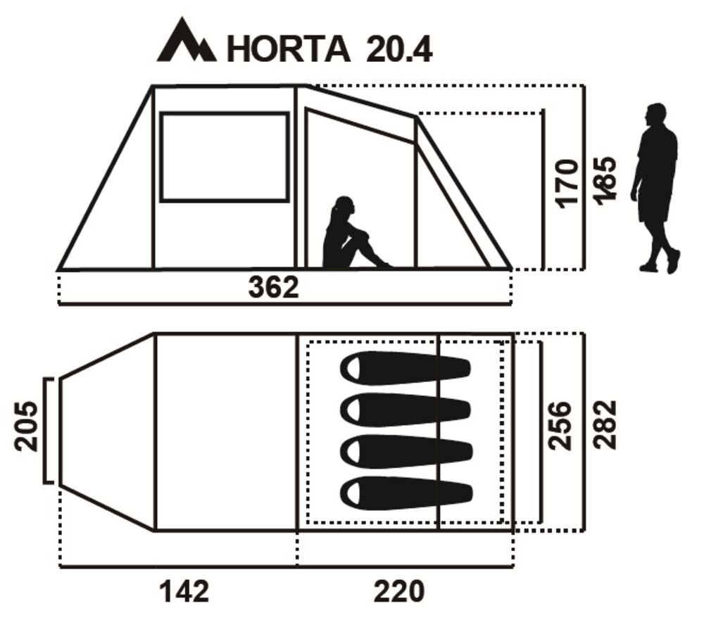 - Sisäteltan mitat 210 × 280 × 185 cm