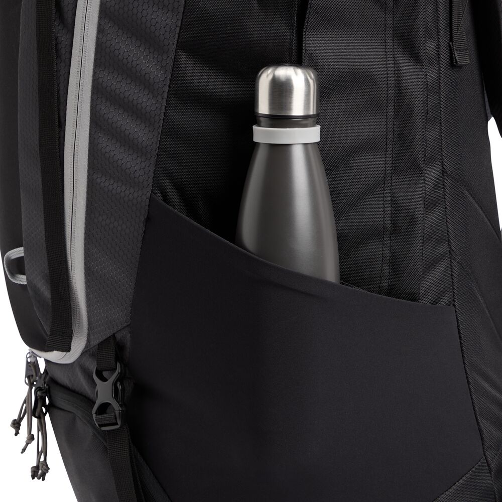 Yhteensopiva McKinley juomapussien kanssa. Integroidut sivutaskut. Pakkausmahdollisuus sivusta. Kiinnitys sauvoille.