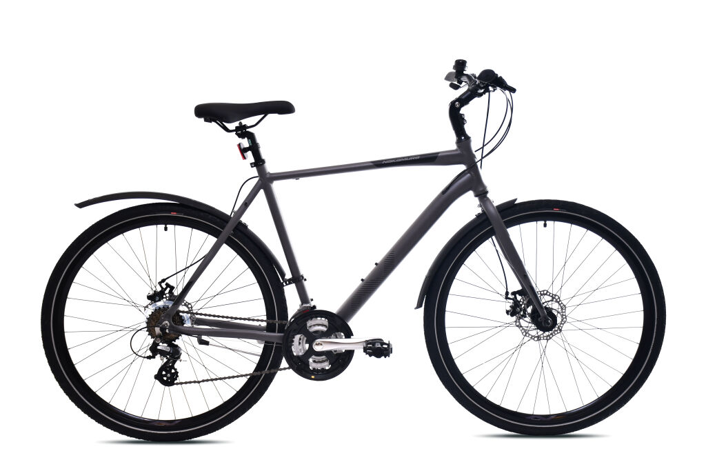 Täsmällinen Shimano 3x7 -vaihteisto tarjoaa laajan välitysalueen niin tasaisille kaduille kuin ja nousee kevyesti ylämäkiin. Vaihteiden käyttö on helppoa ja loogista, joten ajorytmi pysyy tasaisena ilman turhaa säätämistä. Tehokkaat levyjarrut tuovat varmaa hallintaa kaikissa olosuhteissa ja lisäävät turvallisuutta kaupunkiliikenteessä.