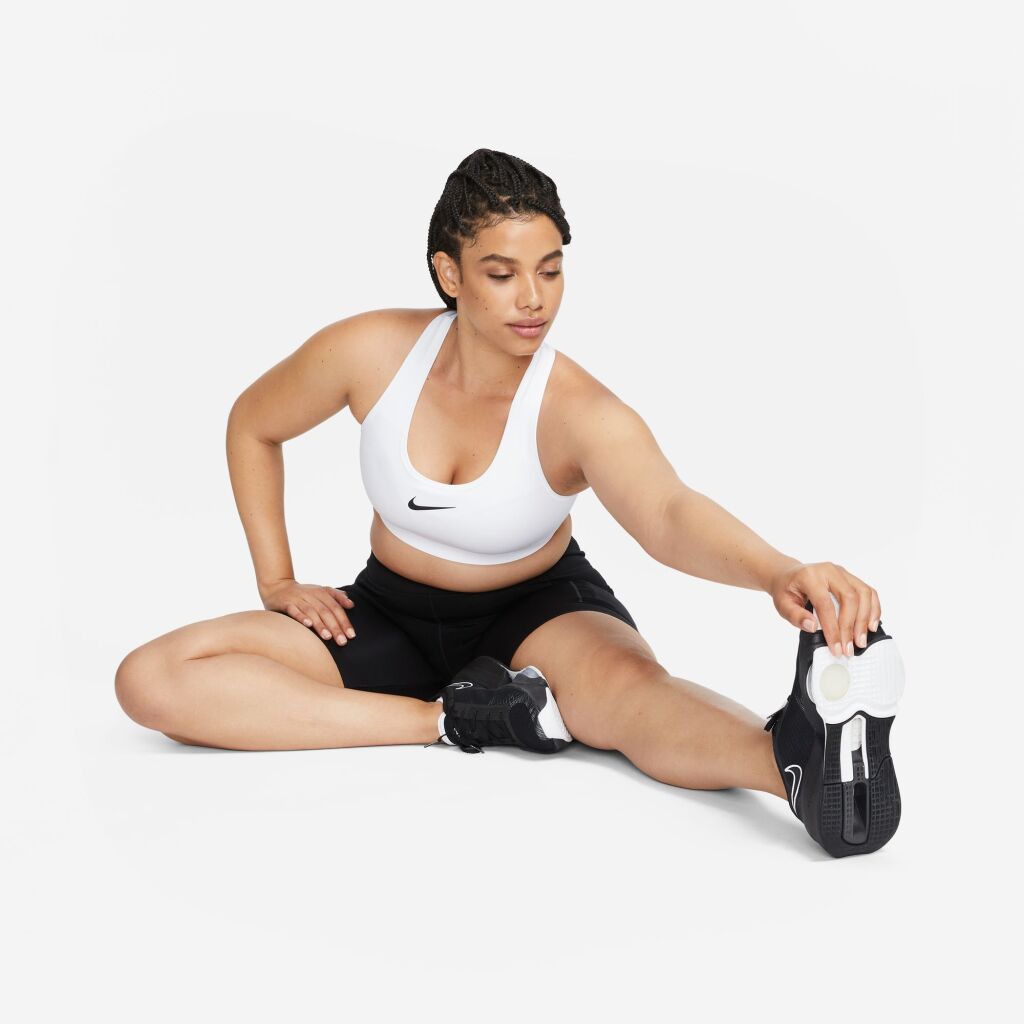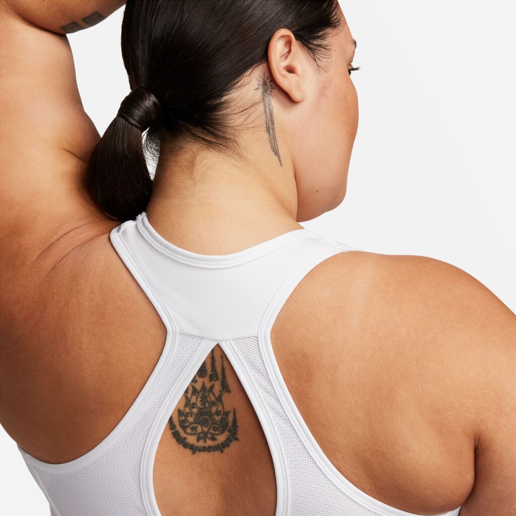 Naisten pehmustamatomat säädettävät urheiluliivit.Valmistaudu antamaan kaikkesi näissä Swoosh-urheiluliivissä. Korkea tukitaso antaa varman ja tiiviin tunteen, mikä auttaa minimoimaan liikettä, tehden siitä ihanteellisen juoksuun ja korkean intensiteetin urheiluun. Kostetutta siirtävä, mukautuva materiaali palautuu nopeasti muotoonsa. Kun tarvitset säätöjä, alaosan pidennetty tarranauha tekee istuvuuden muuttamisesta helppoa.