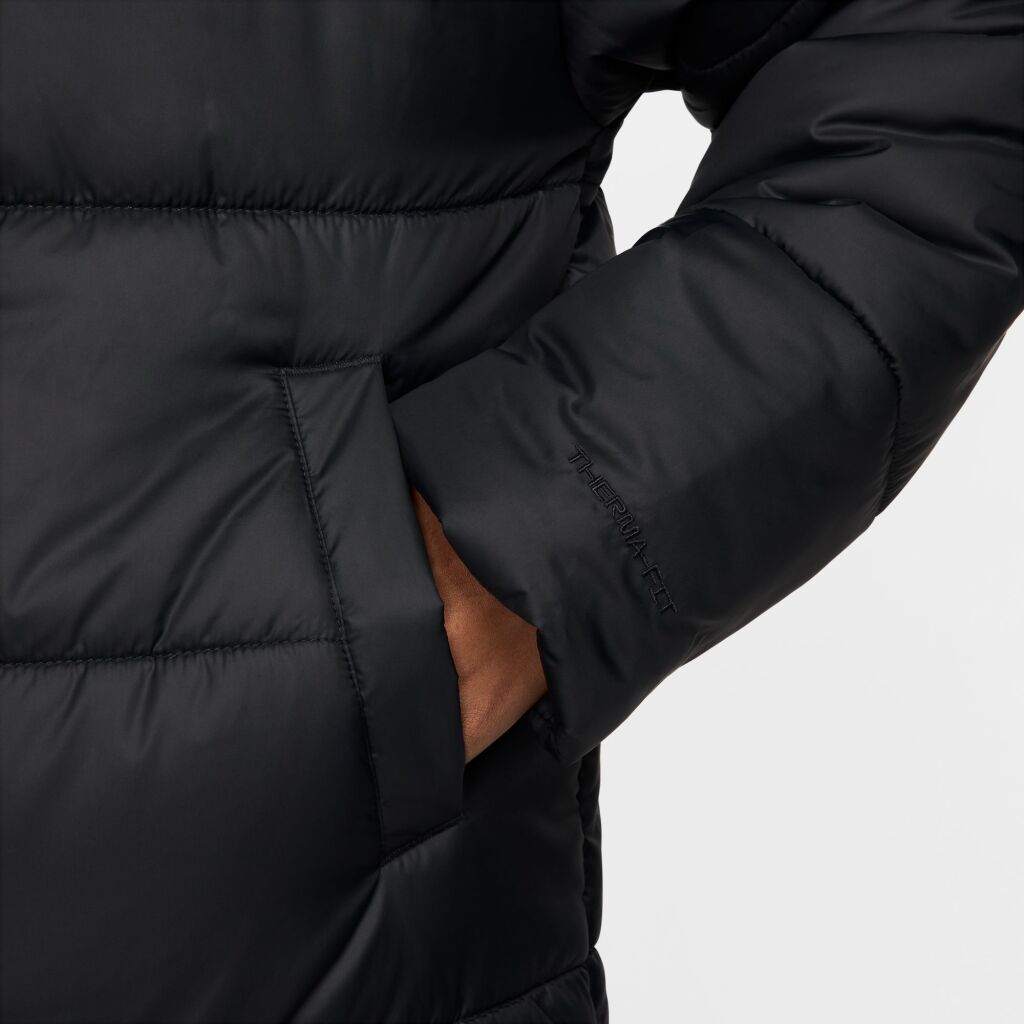 Naisten Nike Therma-FIT Loose Parka -parkatakki tuo lämpöä kylmille keleille. Takki on tarpeeksi väljä kerrospukeutumiseen ja sen synteettinen täyte lisää eristystä samalla, kun Nike Therma-FIT -teknologia auttaa hallitsemaan kehosi luonnollista lämpöä, jotta pysyt lämpimänä kylmissä sääolosuhteissa. Lisäksi vettä hylkivä pinta auttaa pitämään kuivana. Napitettavat taskut pitävät pientavarat lähelläsi tai kätesi suojassa kylmältä.