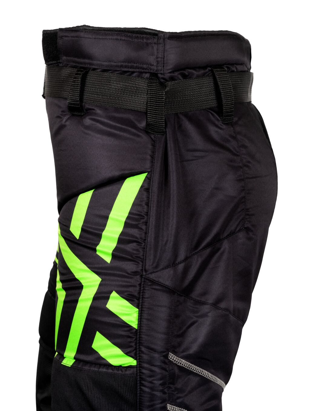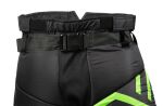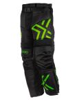 Junioreiden laadukas maalivahdinhousu monipuolisilla ominaisuuksilla koviin peleihin. Kevyt rakenne, pitkät vetoketjut punteissa, joustava haarakiila. Vyö ja nostettu vyötärö. Väri musta/vihreä.