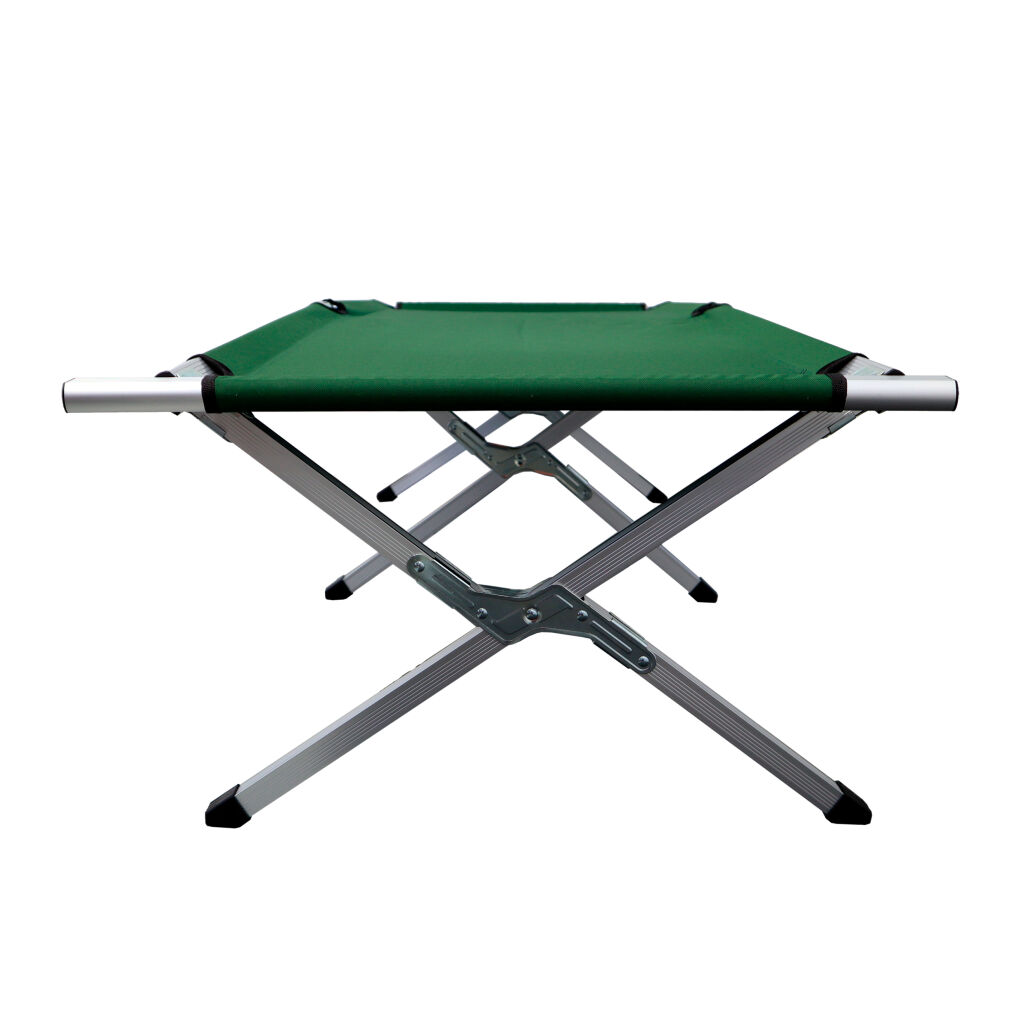 Käytännöllinen ja helposti mukaan otettava matkasänky, jossa nukut mukavasti teltoissa, eräkämpissä, liikuntasaleissa jne. Runko alumiinia, kangas 600D oxford. Pakataan kantokassiin. Väri: vihreä.