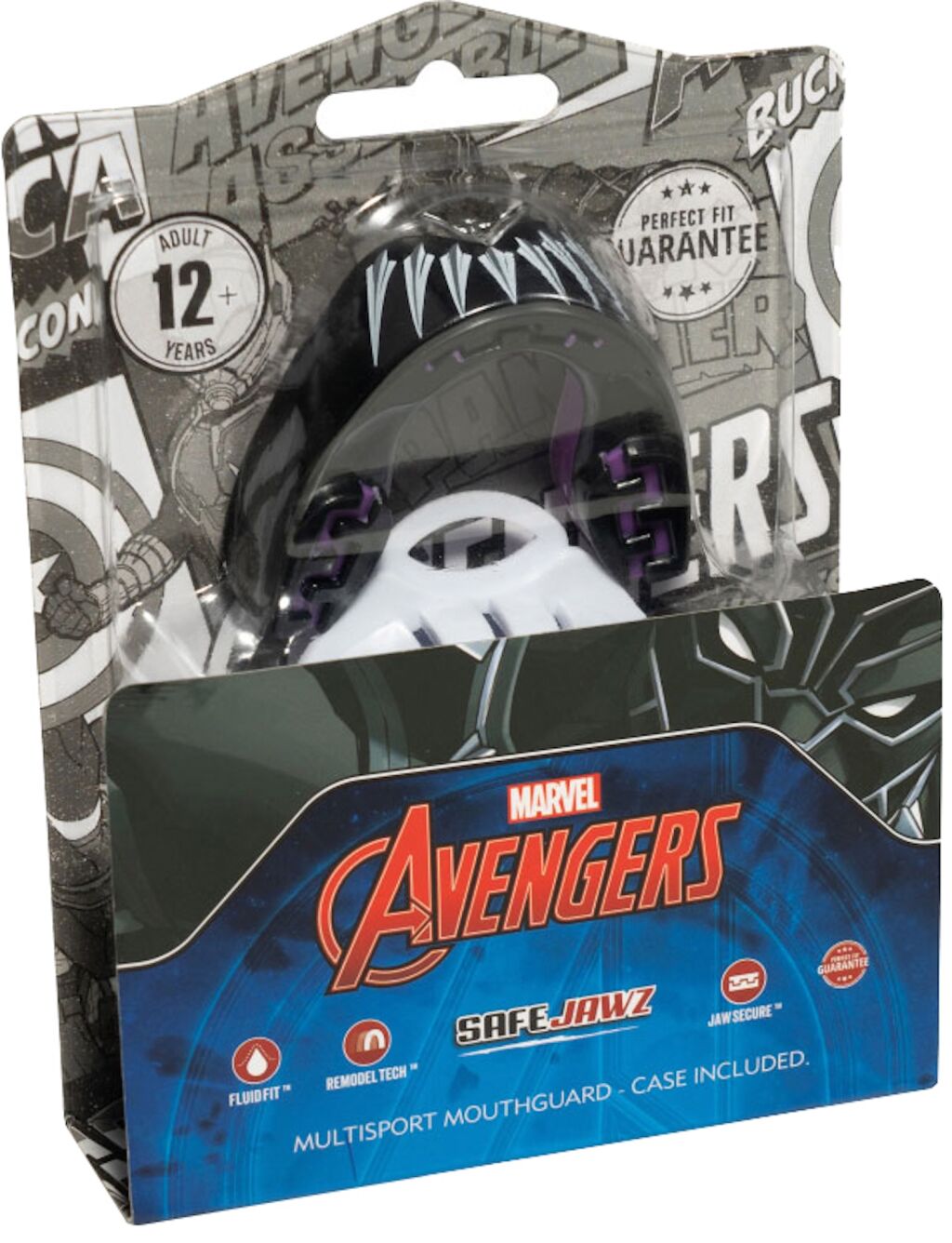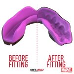 Kaksikerroksinen hammassuoja eri Marvel-hahmojen ulkoasuilla. Suoja yhdistää erittäin mukavan istuvuuden ja optimaalisen suojan hampaille. Soveltuu kaikkiin urheilulajeihin.