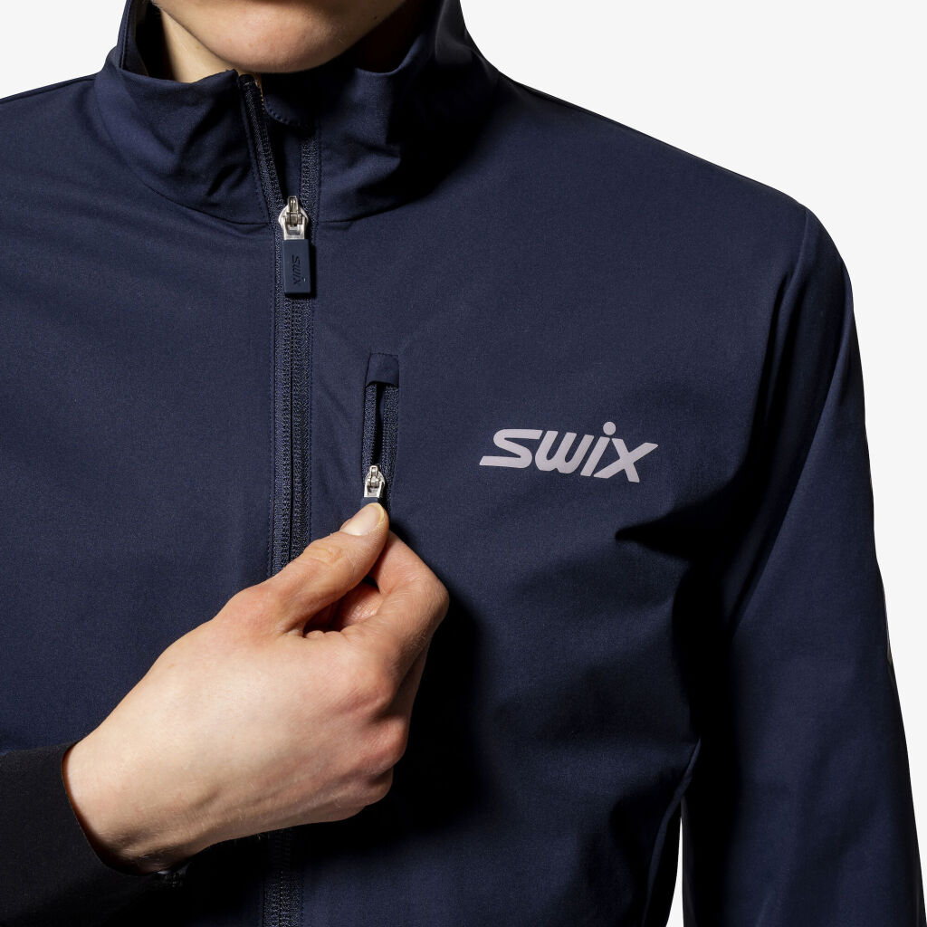 Swix Pace Wind Jacket on tekninen treenitakki, joka on suunniteltu erityisesti juoksuun kolmen vuodenajan (kevät-kesä-syksy) olosuhteissa. Takin materiaali on ultrakevyttä, viimalta suojavaa ja uskomattoman hengittävää kangasta, joka antaa sinulle täydellisen liikkumisen vapauden. Selän yläosa on joustavaa verkkokangasta, mikä parantaa toiminnallisuutta ja hengittävyyttä, silloin kun haluat treenata todella kovaa. Saumojen sijoitteluun olemme kiinnittäneet erityistä huomiota ja vyötärön seudun suunnittelussa olemme ottaneet huomioon juoksuvyön käytön. Jotta takki olisi mahdollisimman huomaamaton päällä, olemme leikanneet hihan suut laserilla. Tämän ansiosta voit sananmukaisesti kääriä hihat, kun haluat haastaa itsesi! Vetoketjullinen rintatasku täydentää kokonaisuuden ja heijastavat yksityiskohdat ovat tarpeen hämärällä.