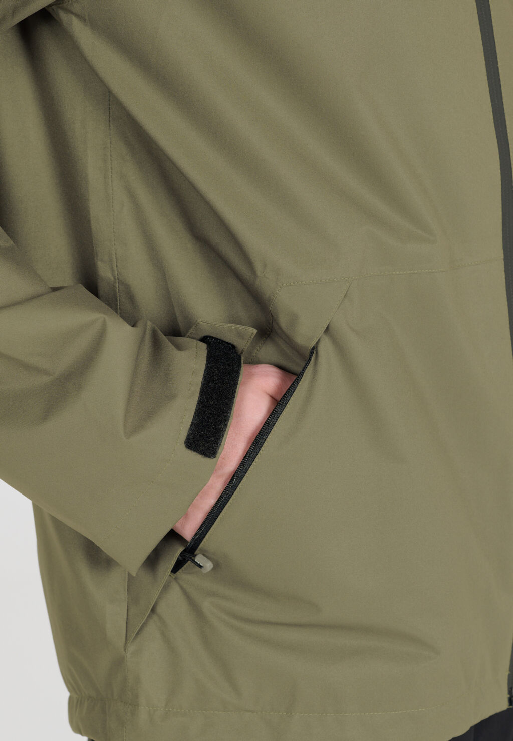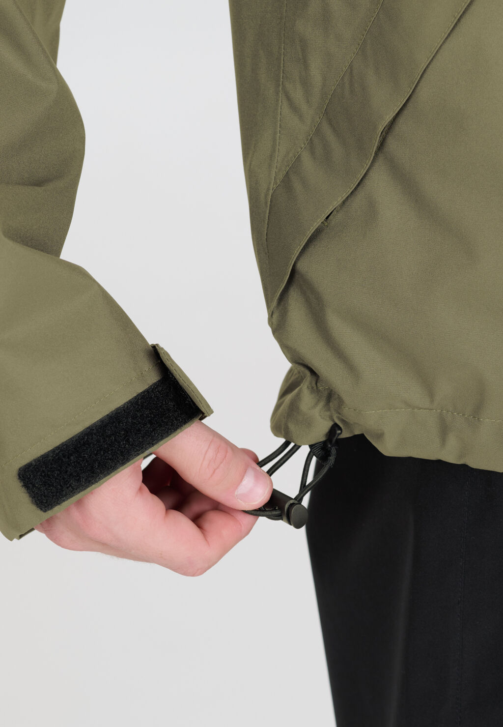 - Säädettävä huppu, helma ja hihansuut