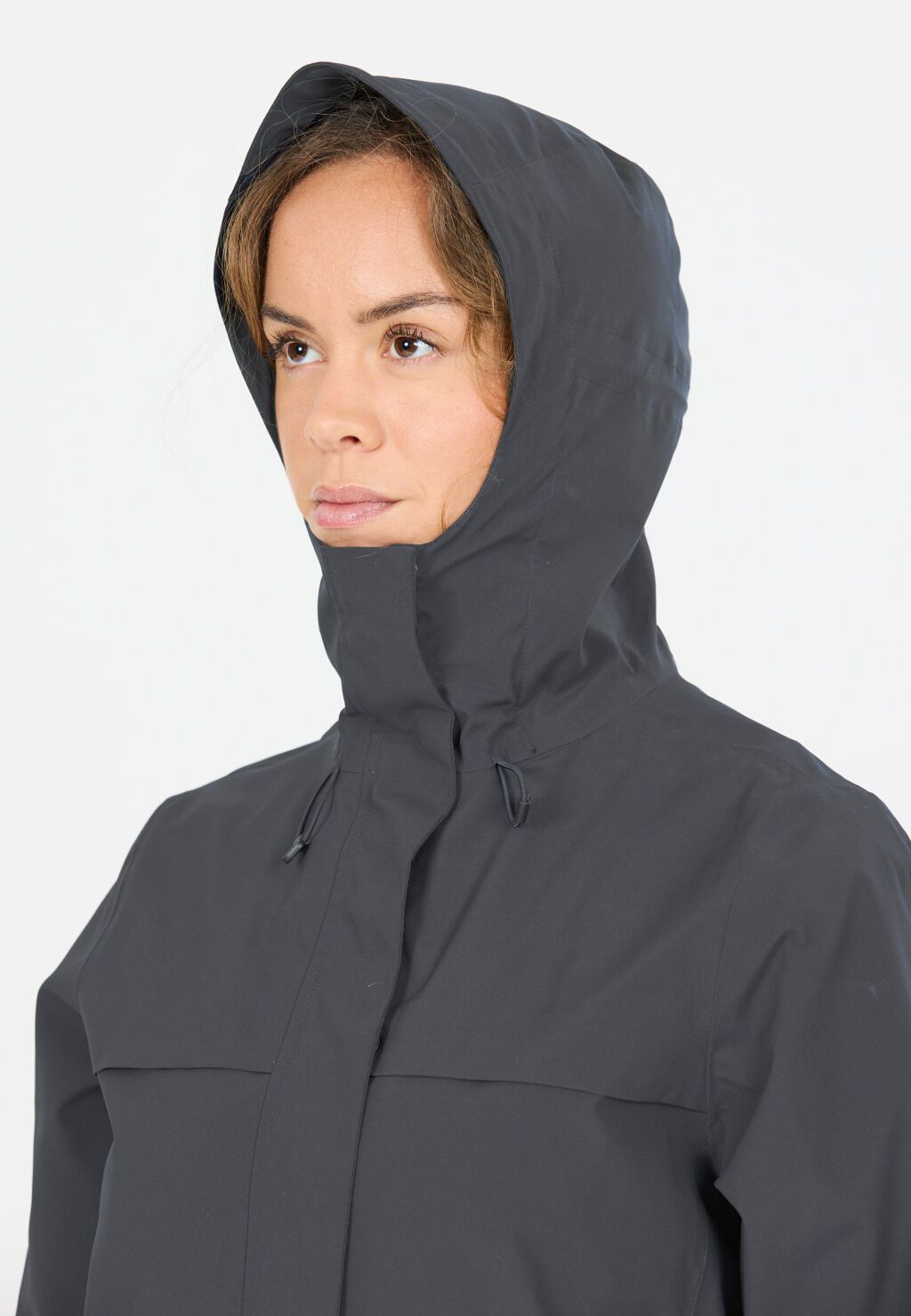 - Säädetävä huppu, helma ja hihansuut