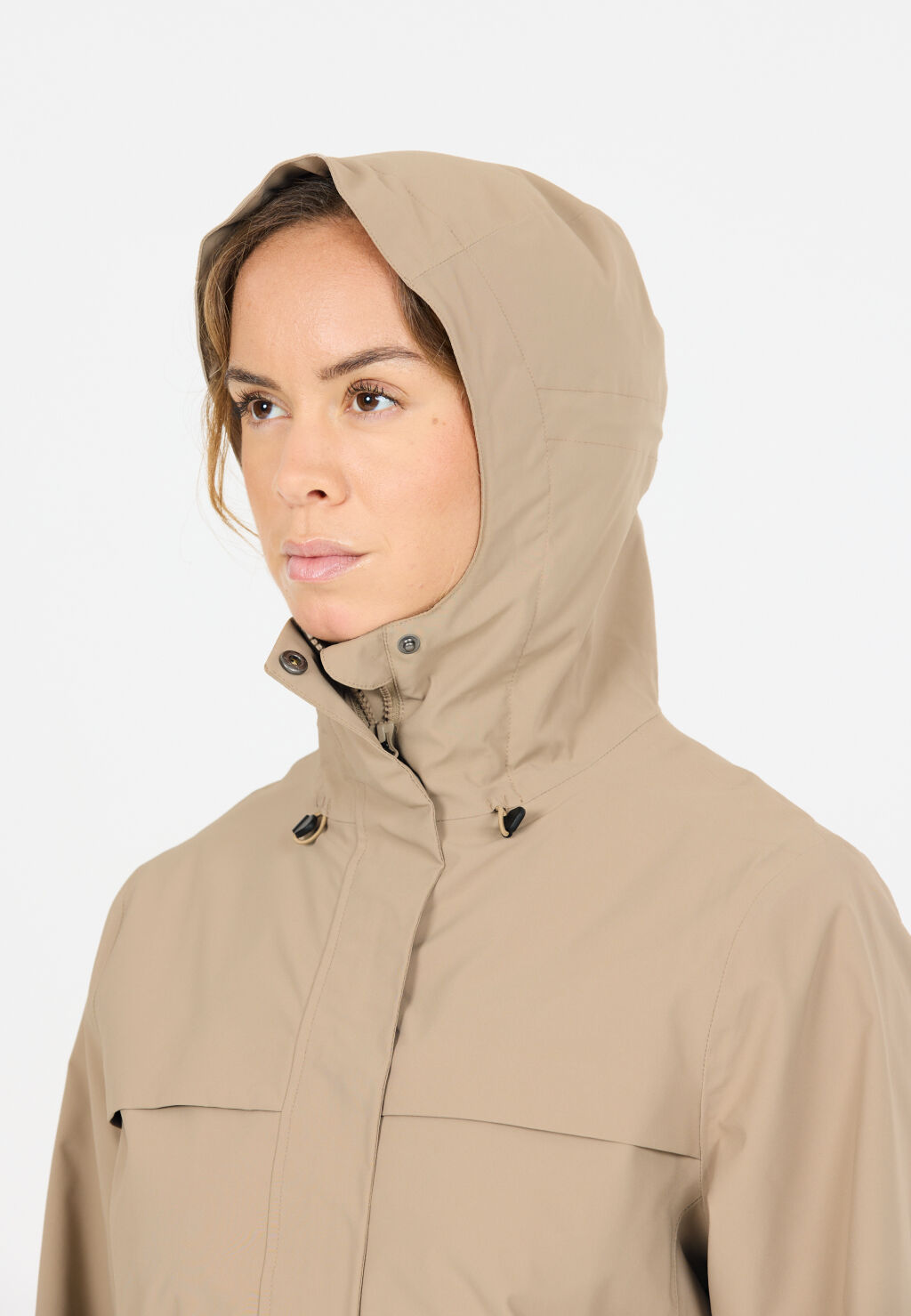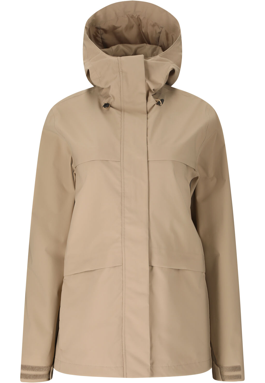 - Säädetävä huppu, helma ja hihansuut