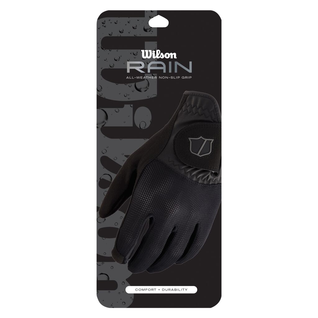 Wilsonin sadehanska mahdollistaa pelaamisen vesisateessa. Kun hanskan pinta kostuu tulee materiaalista pitävämpi. Pakkauksessa on hanskat molempiin käsiin.